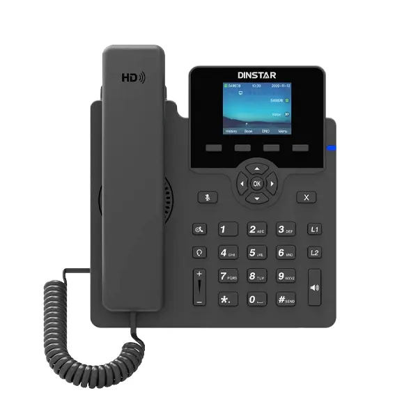 تلفن ویپ دینستار C62UP ترکیبی متعادل از قابلیتهای ضروری و قیمت مناسب ارائه میدهد که آن را به گزینهای مطلوب برای کسب و کارهای کوچک تا متوسط تبدیل میکند. پشتیبانی از ۶ حساب SIP همزمان نیازهای اکثر کاربران تجاری را پوشش میدهد. نمایشگر LCD رنگی ۲.۴ اینچی اطلاعات مورد نیاز را به خوبی نمایش میدهد. کیفیت صدای مناسب و پشتیبانی از کدکهای متنوع، مکالمات واضح و بینقص را تضمین میکند.