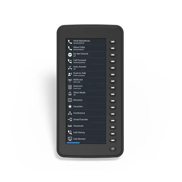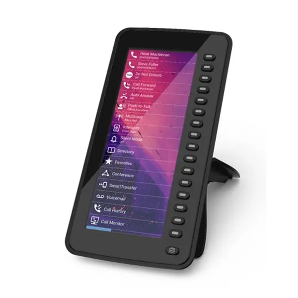 این ماژول دارای ۱۷ کلید سختافزاری است که شامل ۱۶ کلید هوشمند SmartLabel با LED چند رنگ و یک کلید اختصاصی تغییر صفحه میباشد. کلیدهای SmartLabel قابلیت پشتیبانی از ۴۸ عملکرد مختلف (۱۶ کلید × ۳ صفحه) را دارند که انعطافپذیری فوقالعادهای در تنظیمات ارائه میدهد. هر کلید مجهز به LED چند رنگ است که وضعیت آن عملکرد خاص را نمایش میدهد، به عنوان مثال اشغال بودن یا آزاد بودن یک خط تلفن.این ویژگی باعث میشود کاربران بتوانند به سرعت وضعیت هر خط را تشخیص دهند و تصمیمگیری سریعتری داشته باشند. امکان برنامهریزی کلیدها برای عملکردهای مختلف نظیر شمارهگیری سریع، انتقال تماس، پارک تماس و نظارت بر خطوط وجود دارد.