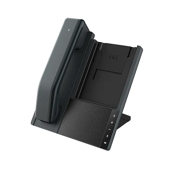 پایه DB20-H همزمان با عملکرد تلفنی خود، دارای شارژر بیسیم پرقدرت ۱۰ واتی است که برای گوشیهای هوشمند با ابعاد ۵.۸ تا ۶.۸ اینچ ایدهآل طراحی شده است. کافی است موبایل خود را روی پایه قرار دهید تا بدون نیاز به اتصال کابل مستقیماً شارژ شود. طراحی ارگونومیک پایه امکان تنظیم زاویه افقی تا ۲۰ درجه و حرکت عمودی تا ۲ سانتیمتر را برای تسلط بهتر و سازگاری با انواع گوشیها و هندست فراهم کرده است. این قابلیت علاوه بر منظم کردن میز کار، سرعت و راحتی شارژ دستگاههای همراه را دوچندان میکند.