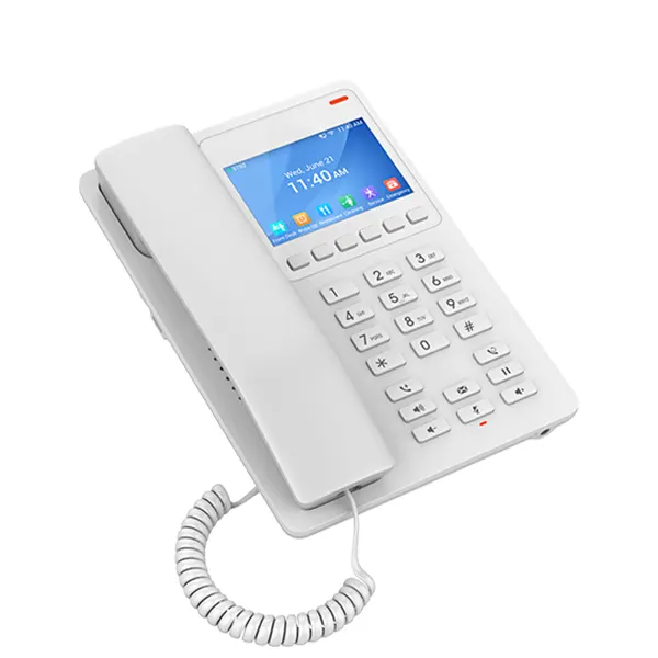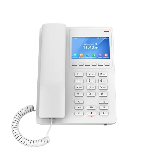 تلفن هتلی GHP630W نه تنها یک ابزار تماس، بلکه یک نقطه کانونی ارتباطی هوشمند و کاربردی در هر اتاق هتل است. این دستگاه با تأکید بر سادگی استفاده و ارائه بهترین تجربه به مهمان، طراحی شده است. از مهمترین ویژگیهای آن میتوان به کیفیت صدای HD در هر دو حالت گوشی و اسپیکرفون اشاره کرد که مکالماتی شفاف و واضح را تضمین میکند. وجود صفحهنمایش رنگی ۲.۴ اینچی، دسترسی به اطلاعات و عملکردهای مختلف را آسان کرده و تجربه بصری دلنشینی را فراهم میآورد.