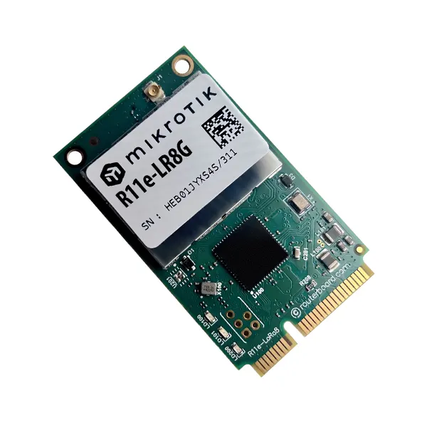 اگر می خواهید به ساده ترین شکل ممکن از طریق یک اسلات mini PCIe یک اتصال LoRa® با دستگاه های MikroTik برقرار کنید کارت گیت وی R11e-LR8G بهترین انتخاب است. از ویژگی های این کارت می توان به حساسیت استثنایی Rx اشاره کرد. این حساسیت از ۱۴۱ دسی بل برای ۸۶۸ مگاهرتز می باشد. از طرف دیگر این کارت تضمین می کند که اتصالات دوربرد پایدار و ثابت برقرار می نماید.