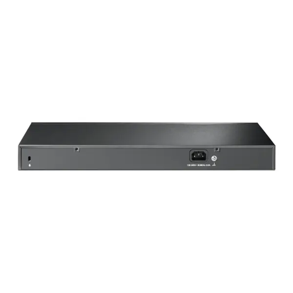 سوئیچ TL-SG1428PE مجهز به ۲۶ پورت اترنت گیگابیت (۱۰/۱۰۰/۱۰۰۰ Mbps) RJ45 است که از قابلیت Auto-MDI/MDIX و Negotiation خودکار پشتیبانی میکنند. از این ۲۶ پورت، تعداد ۲۴ پورت از استانداردهای PoE+ (802.3at) و PoE (802.3af) پشتیبانی میکنند. این بدان معناست که میتوانند تا ۳۰ وات برق در هر پورت برای دستگاههای نیازمند برق مانند دوربینها، تلفنهای ویپ و اکسس پوینتها تامین کنند. کل بودجه برق PoE دستگاه ۲۵۰ وات است که به صورت هوشمند بین پورتها توزیع میشود. این قابلیت انقلابی در سادگی نصب ایجاد کرده، هزینههای مربوط به کابلکشی برق جداگانه و نصب پریزهای متعدد را به شدت کاهش میدهد و مدیریت متمرکز برق دستگاههای شبکه را ممکن میسازد.