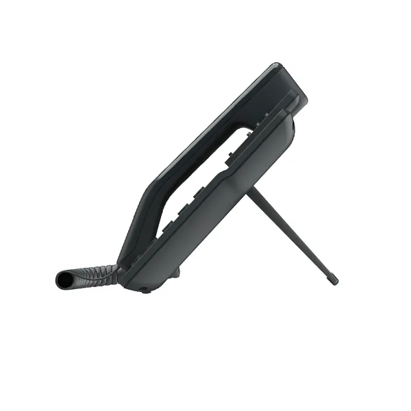 فنویل V60P با طراحی مدرن و ارگونومیک، بهراحتی با هر محیط اداری هماهنگ میشود. بدنه دستگاه از پلاستیک مقاوم و باکیفیت ساخته شده و رنگ مشکی مات آن جلوهای حرفهای به میز کار میبخشد. صفحه نمایش ۲.۴ اینچی رنگی با رزولوشن ۳۲۰×۲۴۰ پیکسل، اطلاعات تماس، منوها و اعلانها را با وضوح و جذابیت بصری بالا نمایش میدهد. کلیدهای فیزیکی با فاصله مناسب و بازخورد لمسی خوب، استفاده طولانیمدت را بدون خستگی ممکن میسازند. پایه قابل تنظیم با قابلیت نصب روی میز یا دیوار، انعطافپذیری بالایی برای چیدمان دفاتر مختلف فراهم میکند. ابعاد جمعوجور و وزن سبک (حدود ۷۵۰ گرم) جابجایی و نصب دستگاه را آسان کرده است.